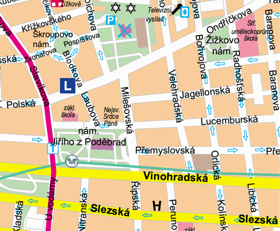 Sídlíme v centru Prahy cca 300 metrů od stanice metra Jiřího z Poděbrad.